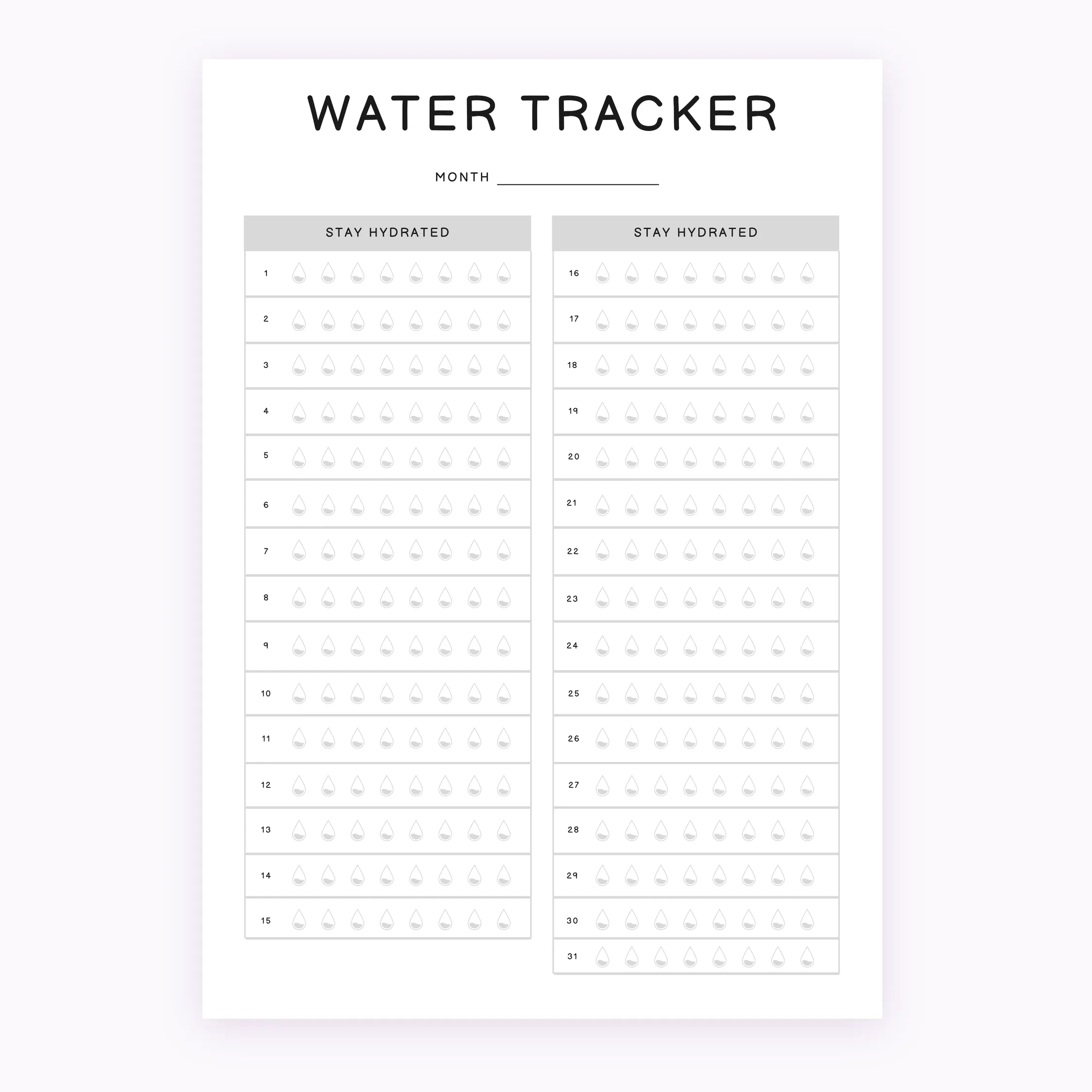 Monthly Water Tracker Printable – Hydration Log | planner.download