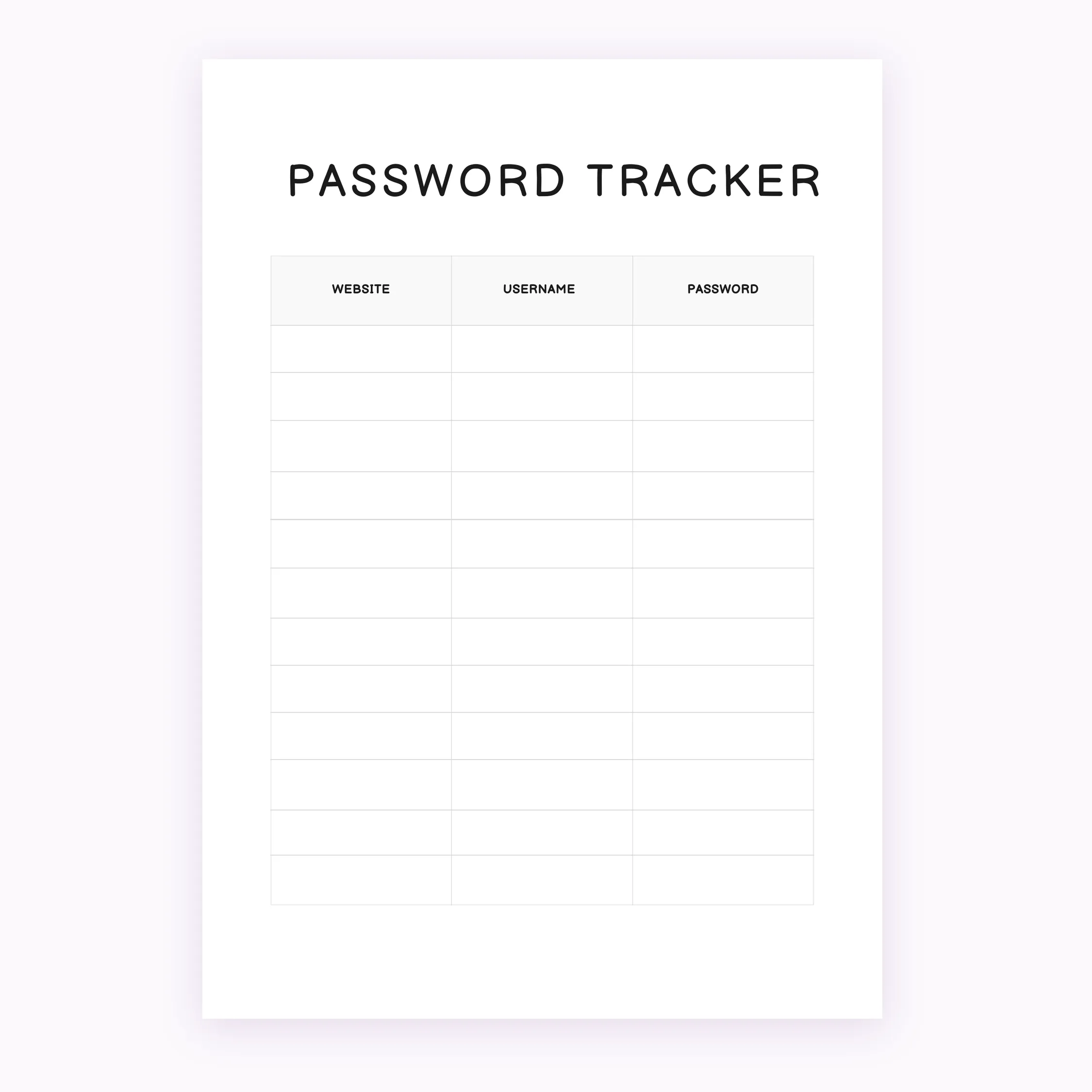 Securely organize your login details with this high-quality Password Tracker Printable. This minimalist password log is available as an instant PDF download in A4 and A5 sizes, perfect for keeping all your credentials in one accessible place.